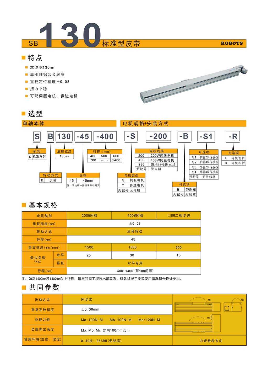 所屬型號:SB130 所屬品牌:福士工業 所屬分類:單軸模組_標準型 應用領域:紡織行業 電梯行業 機床行業