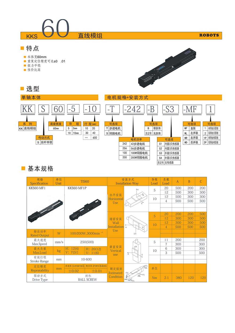 所屬型號:KKS60 所屬品牌:福士工業 所屬分類:KK模組 應用領域:紡織行業 電梯行業 機床行業